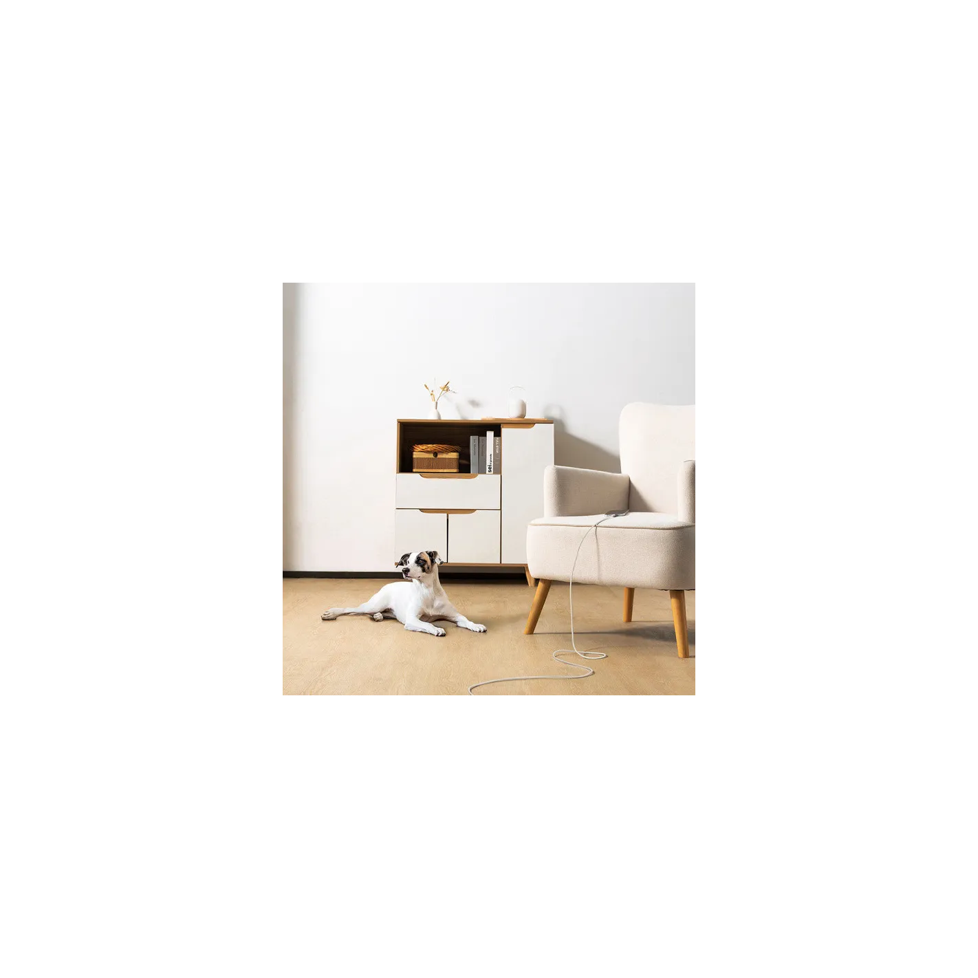 Stylowy pastelowy design pasuje do każdego otoczenia, a pasek podkreśla estetyczny wygląd kabla i ułatwia przechowywanie go.
