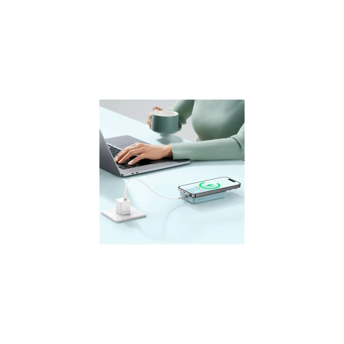 Power bank oferuje bezprzewodowe ładowanie kompatybilne z technologią MagSafe, gwarantując idealne dopasowanie i stabilne trzymanie urządzenia dzięki silnemu, wbudowanemu magnesowi. Dzięki tej funkcji, użytkownicy nowych iPhone mogą cieszyć się szybkim i wygodnym ładowaniem, nie martwiąc się o pozycję telefonu.