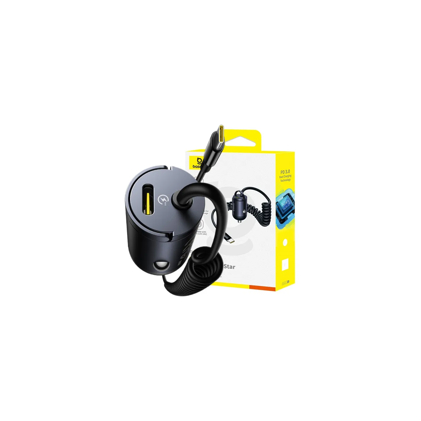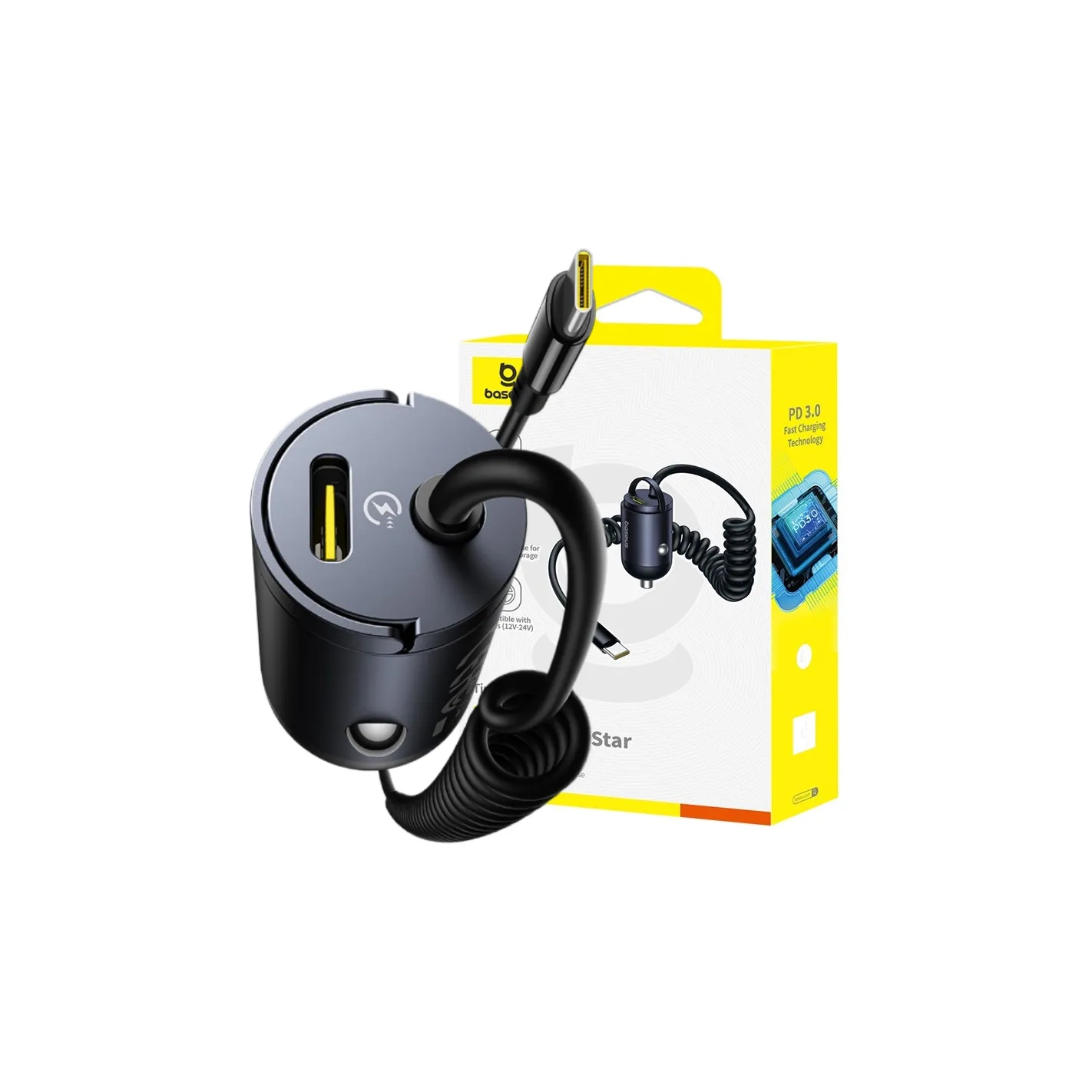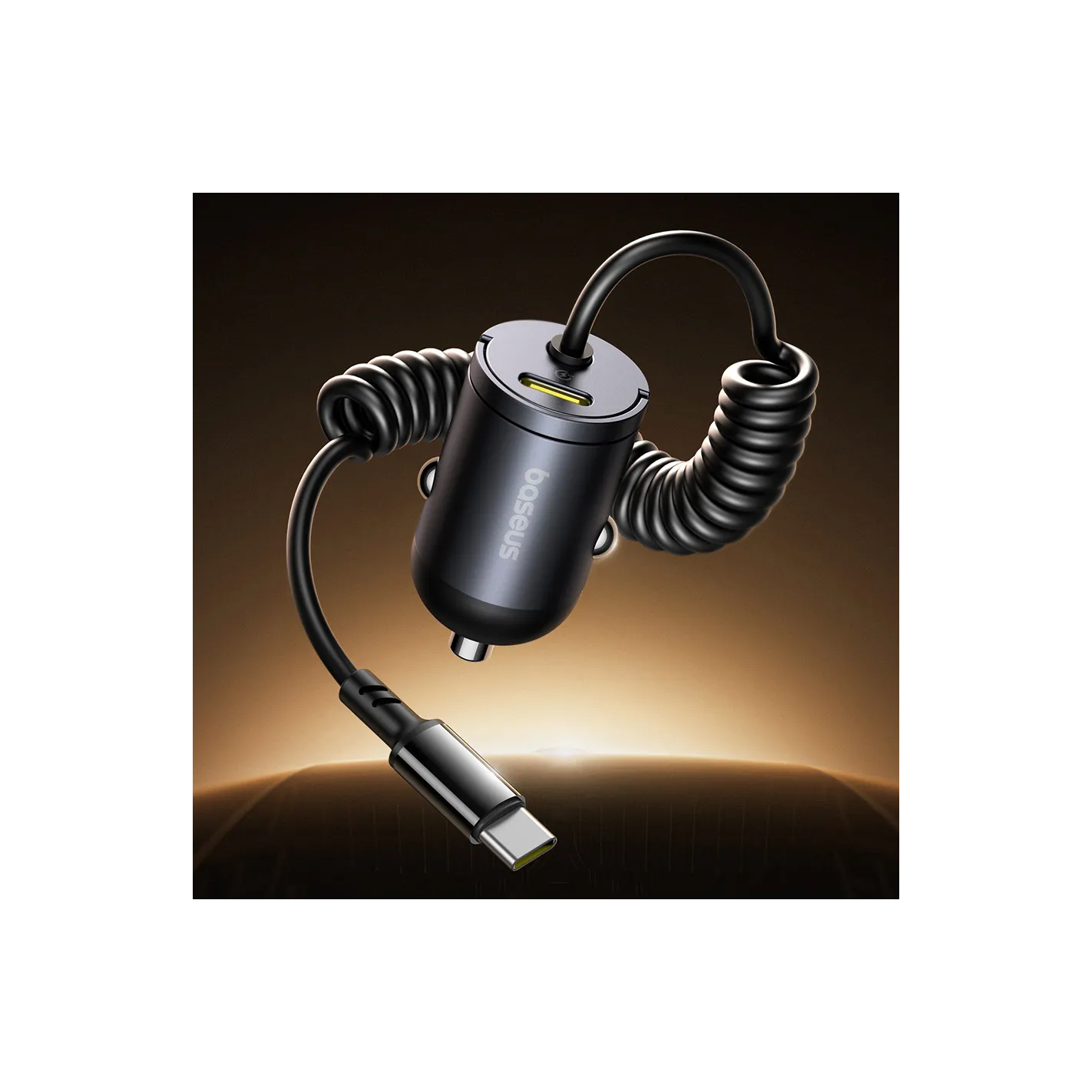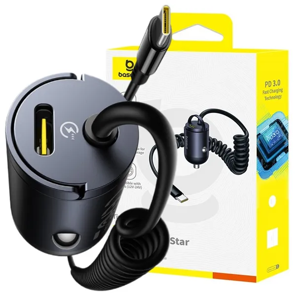 BASEUS ŁADOWARKA SAMOCHODOWA 30W USB-C SZYBKIE ŁADOWANIE KABEL SPRĘŻYNOWY