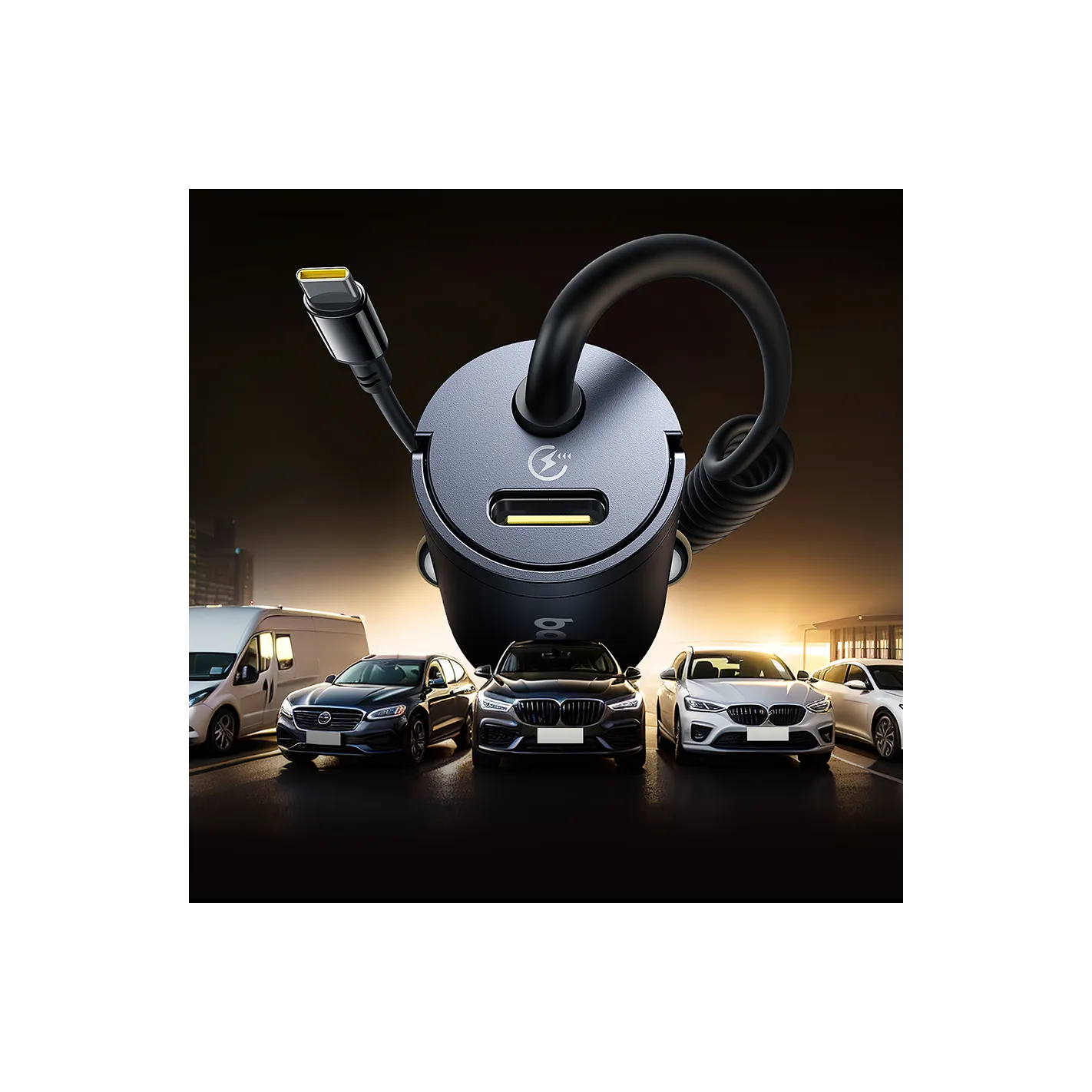Ładowarka została wykonana z trwałego stopu cynku i tworzywa PC, co zapewnia odporność na zarysowania, korozję i wysoką temperaturę. Eleganckie, matowe wykończenie sprawia, że idealnie komponuje się z wnętrzem każdego samochodu.