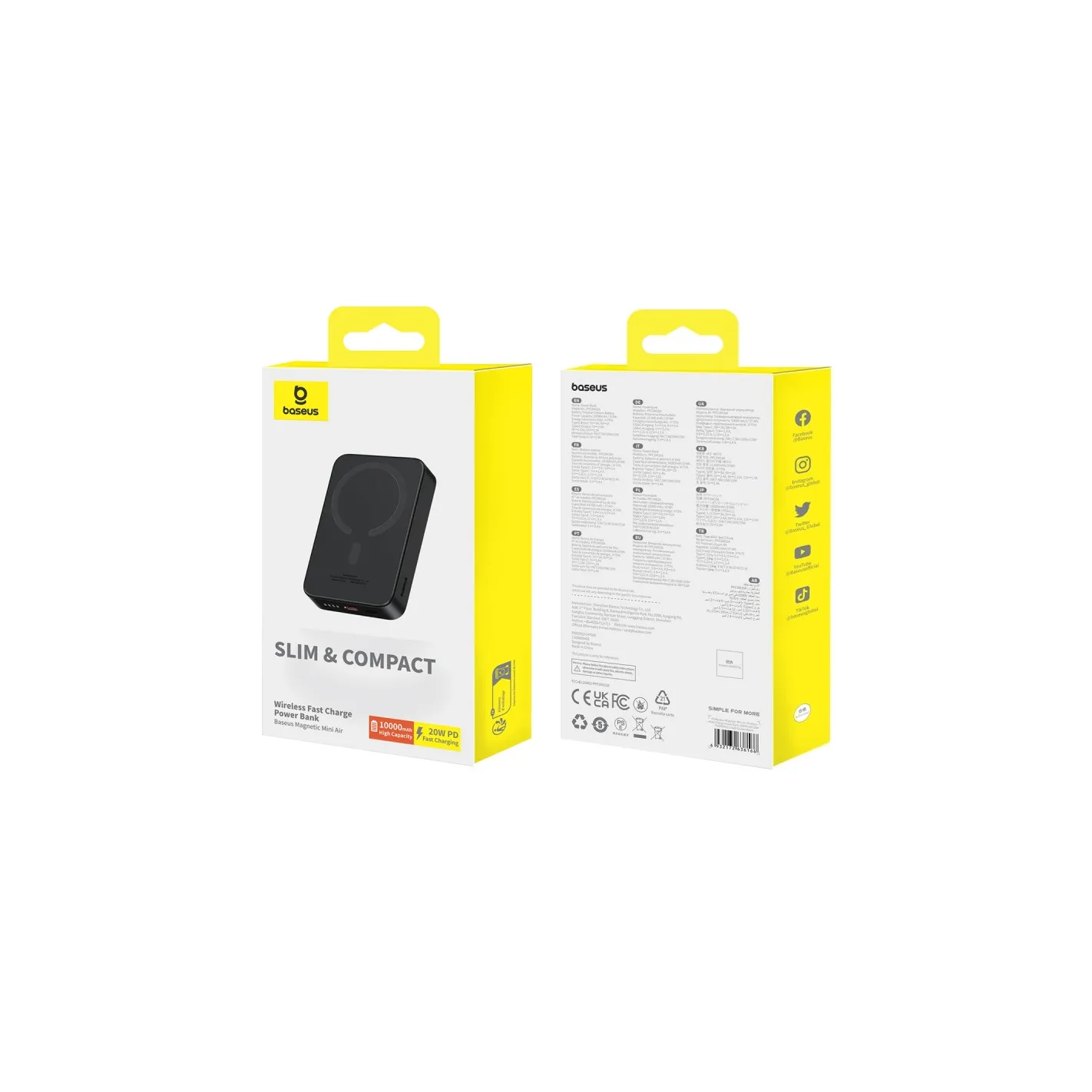 Baseus Magnetic Mini to power bank, który został stworzony z myślą o mobilności i codziennym komforcie. Dzięki wymiarom 10,4 × 6,98 × 1,8 cm i wadze ok. 209 g jest niezwykle poręczny i nie zajmuje wiele miejsca – bez problemu zmieści się w kieszeni czy małej torebce.